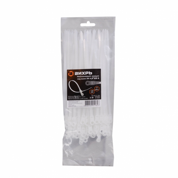 Хомут Вихрь нейлоновый 3.6x180/200 бел 100шт