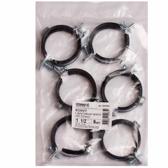 Хомут с винт. крепл.белый цинк 1,1/2 48 52 мм 6 шт
