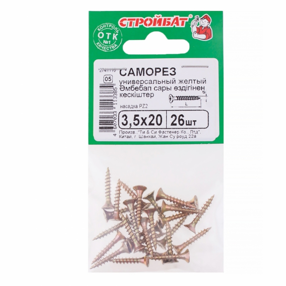 Саморезы универсальные желтый цинк 3,5x20 26 шт