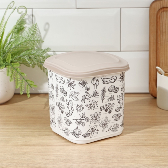 Емкость д/сыпучих продуктов с декором беж 1.1л 221155727 /16