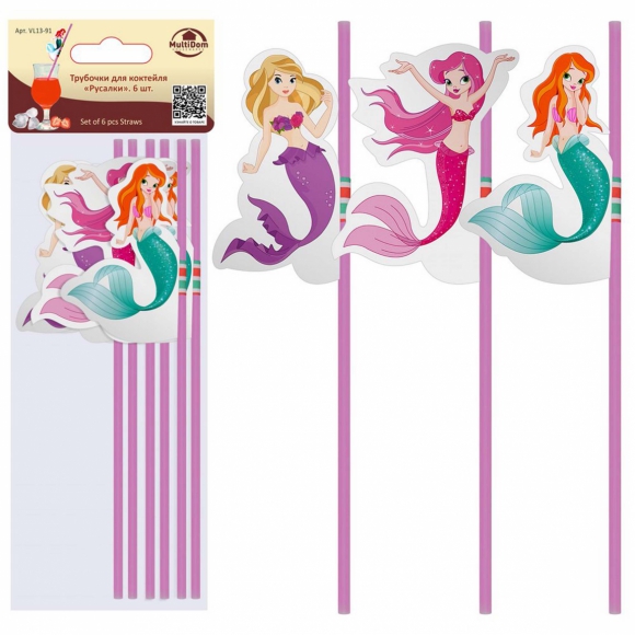 Трубочка д/коктейля Русалки 6шт /12
