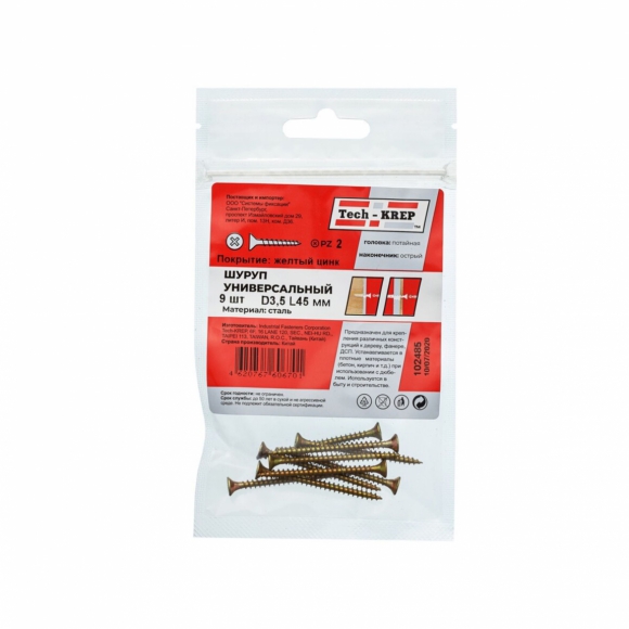 Саморезы Tech-Krep универ желт 3.5х45 пот гол 9шт пакет
