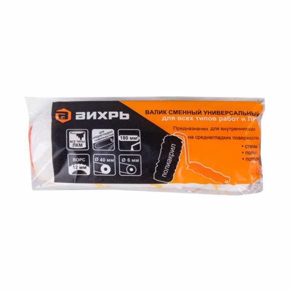 Валик универсальный Вихрь д/всех типов работ и ЛКМ 180/40/6