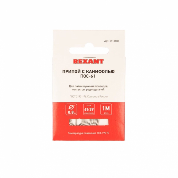 Припой REXANT с канифолью ПОС-61 1м D0.8мм