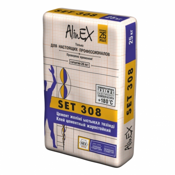 Клей AlinEX SET 308 цемент жаростойкий д/печей каминов 25кг