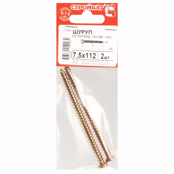 Шуруп по бетону желтый цинк 7,5x112 2 шт