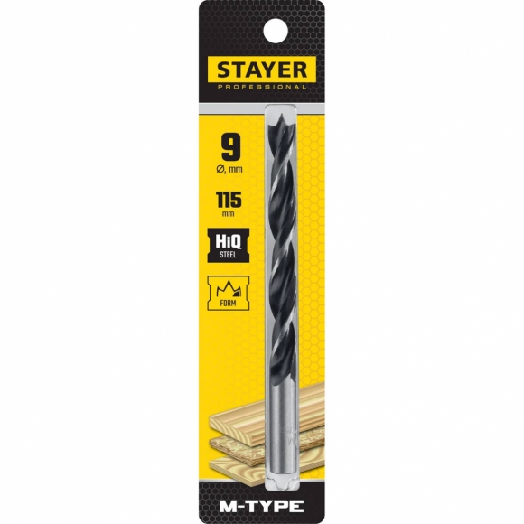 Сверло по дереву STAYER M-type спираль М-образ заточка 9.0x115/90мм
