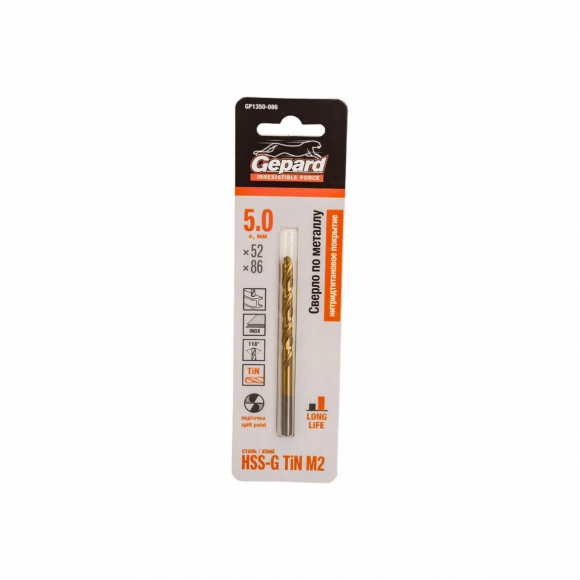 Сверло GEPARD по металлу 5.0мм нитридтитан покрытие GP1350-086