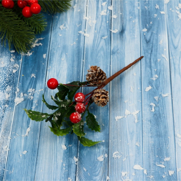 Ветка Зимние мечты веточка с шишк и ягодами 50см 3535540 /343