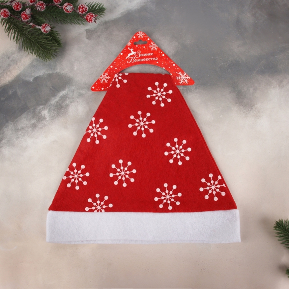 Колпак новогодний Снежинки красный 40x27см 1112358 /600