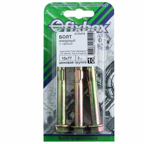 Болт Fixbox анкерный с гайкой цинк 10x50 4шт 219240