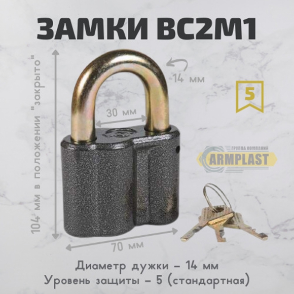 Замок навесной ЧАЗ длин трос 630мм ВС 2-6А-01