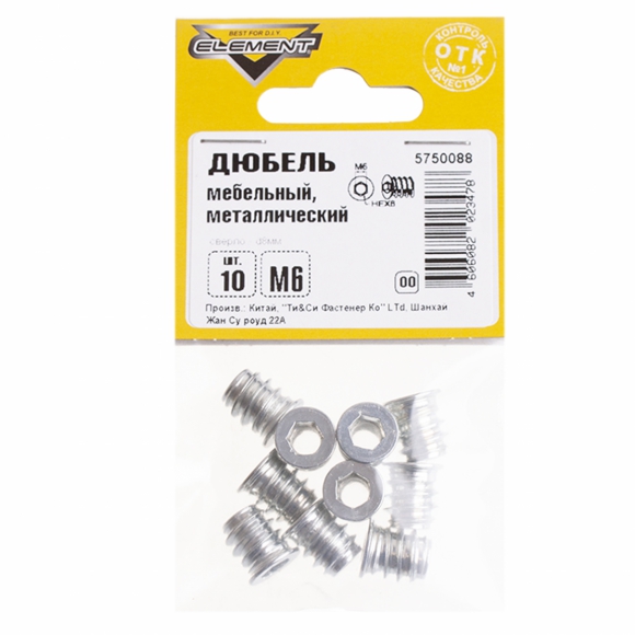 Дюбель мебельный Element метал М6 10шт