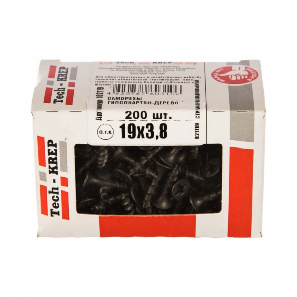 Саморезы Tech-Krep гипс-дерево 3.8х19 200шт кор с окошком