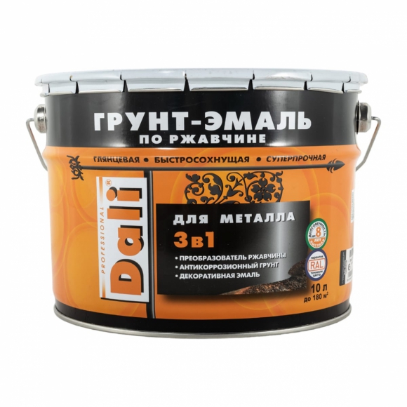 Грунт-эмаль 3в1 DALI по ржавчине д/металла черн 10л