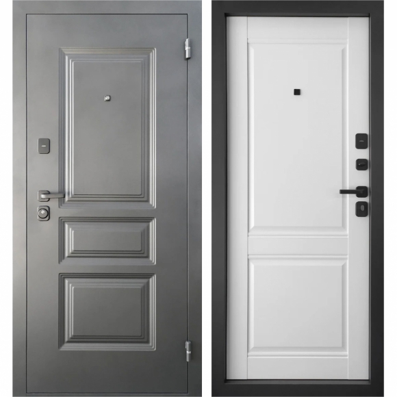 Дверь металл левая Tepla-1 букле графит/белая шагрень 860мм