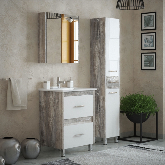 Зеркало-шкаф AVK Эвелин ателье светлое графит древесный 70см