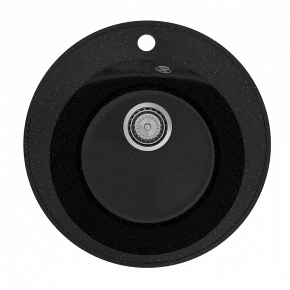 Мойка MIXLINE из искусственного камня черная ML-GM10/308 круглая d440 глубина чаши 180 с сифоном