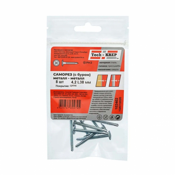 Саморезы Tech-Krep мет-мет сверло 4.2х25 200шт кор с окошком