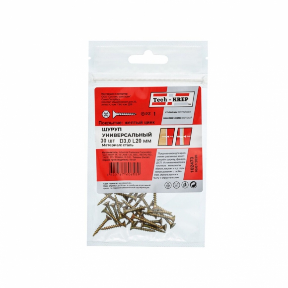Саморезы Tech-Krep универ желт 4.0х12 пот гол 200шт кор с окошком
