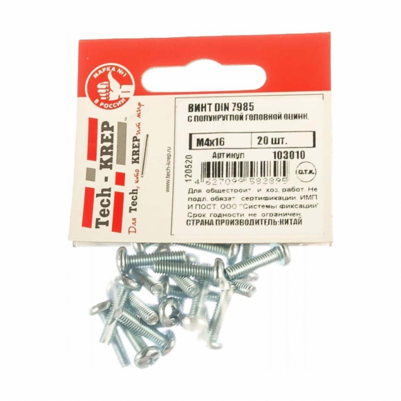 Винт Стройбат DIN7985 М4x10 бел цинк 18шт