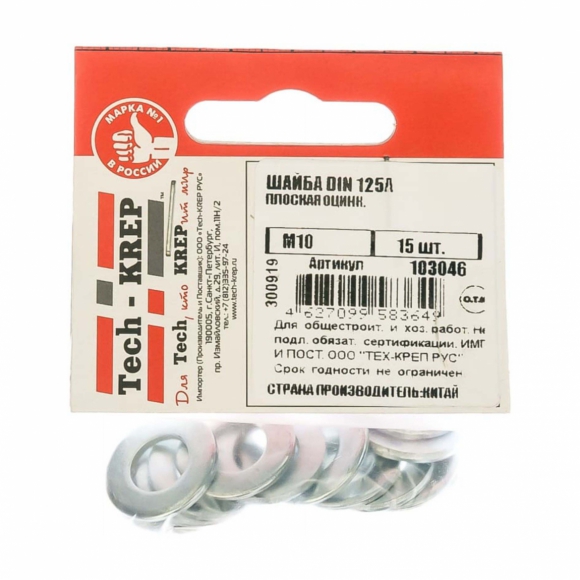 Шайба Tech-Krep DIN125а плоская оцинк М5 50шт пакет