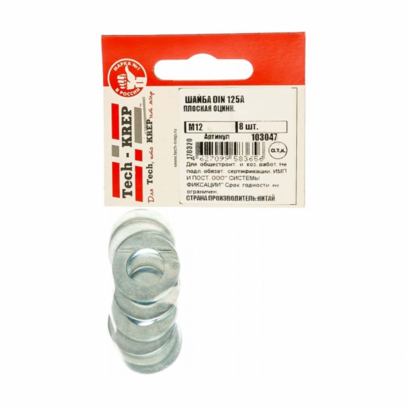 Шайба Tech-Krep DIN125а плоская оцинк М10 15шт пакет