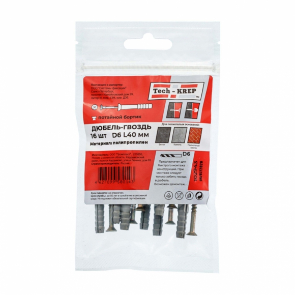 Дюбель-гвоздь Tech-Krep пот манжета полипропилен черный 8х80 10шт пакет