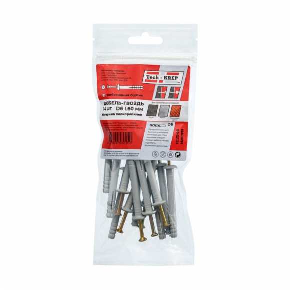 Дюбель-гвоздь Tech-Krep 6L40 цил манжета нейлон 12шт пакет