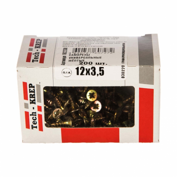 Саморезы Tech-Krep универ желт 4.0х12 пот гол 200шт кор с окошком
