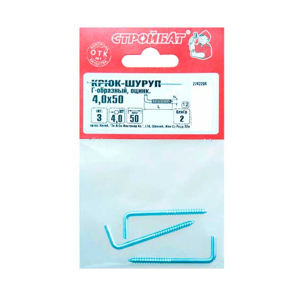 КрюкГ-образный 4,0x50 белый цинк 3 шт