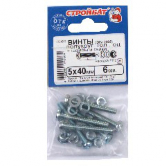 Винт DIN 7985 М5x40 с гайкой и шайбой белый цинк 6 шт,с полукруглой головкой