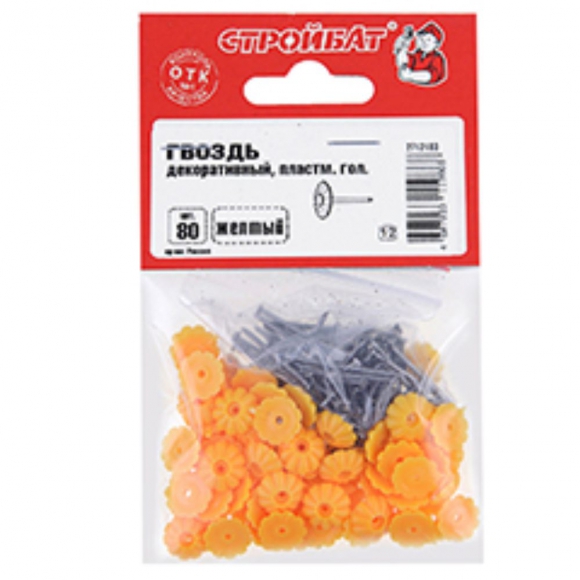 Гвоздидекоративные с пластмассовой головкой желтый 80 шт