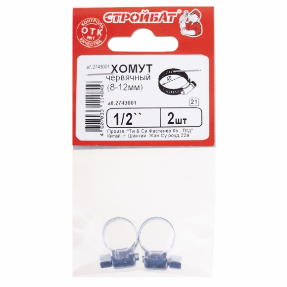 Хомут червячный 1/2" (8-12мм) белый цинк 2 шт