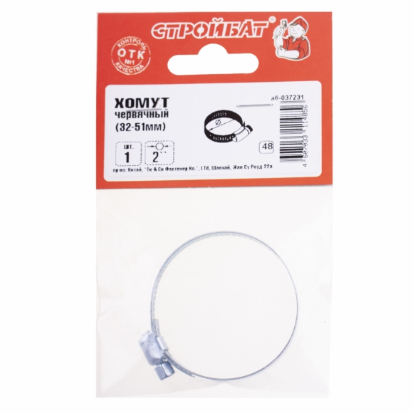 Хомут червячный 2" (32-51мм) белый цинк 1 шт