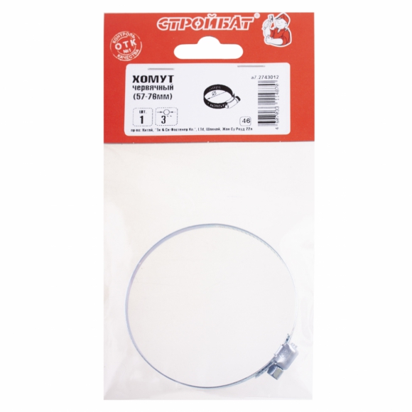 Хомут червячный 3" (57-76мм) белый цинк 1 шт
