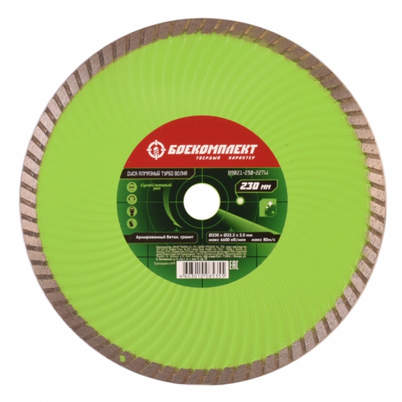 Диск алмазный БОЕКОМПЛЕКТ Turbo Волна сухой 230x22.23 B9021-230-22TW