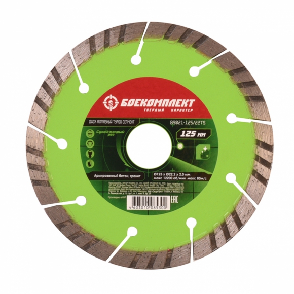 Диск алмазный БОЕКОМПЛЕКТ Turbo Сегмент сухой 125x22.23 B9021-125-22TS