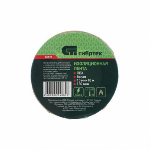 Изолента СИБРТЕХ ПВХ синяя 15мм/10м