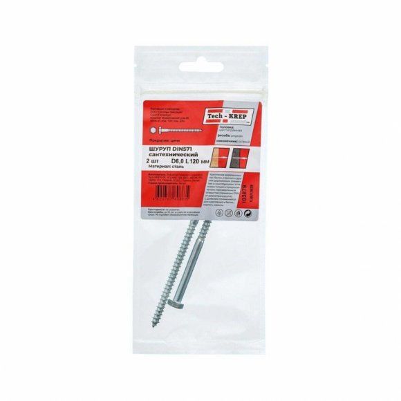 Болт Tech-Krep DIN571 сантехнический оцинк 6х60 4шт пакет