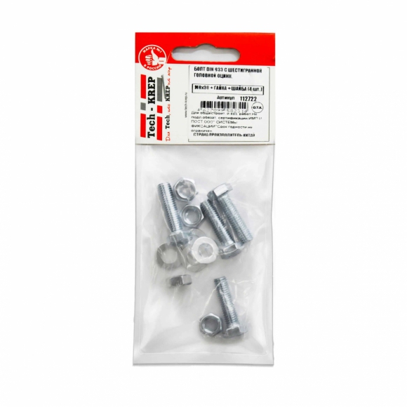 Болт Tech-Krep DIN933 с шестигранной головкой оцинк М6х20 80шт коробка