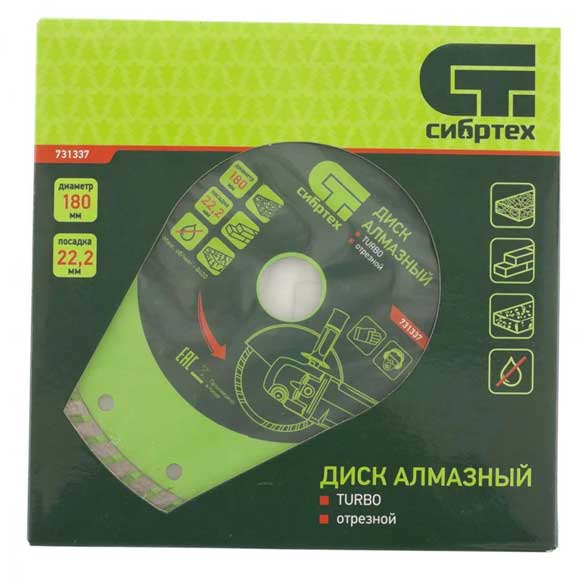 Диск СИБРТЕХ Turbo алмазный отрезной сухая резка 125х22.2мм