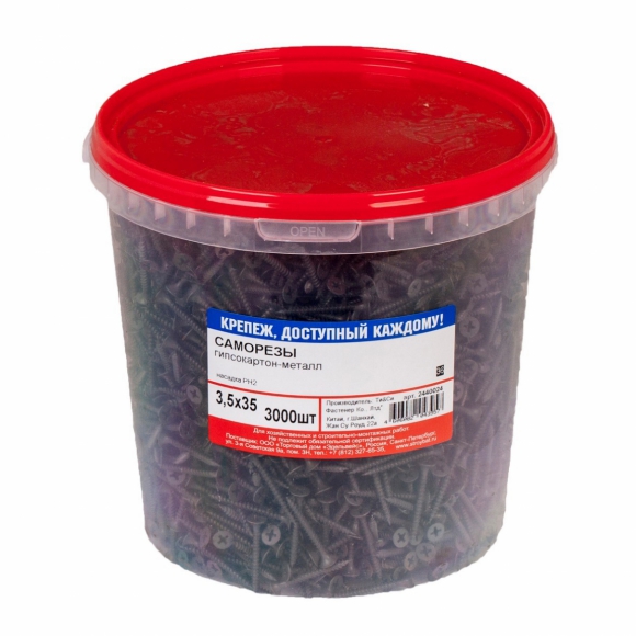Саморезы гипсокартон-металл 3,5x35 фосфатированный 3000 шт