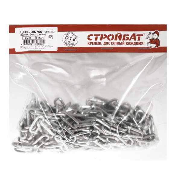 Цепь СтройБат дл звено белый цинк DIN 763 3мм 5м 261620