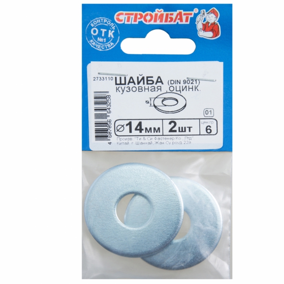 Шайба СтройБат кузовная DIN 9021 бел цинк 12мм 30шт