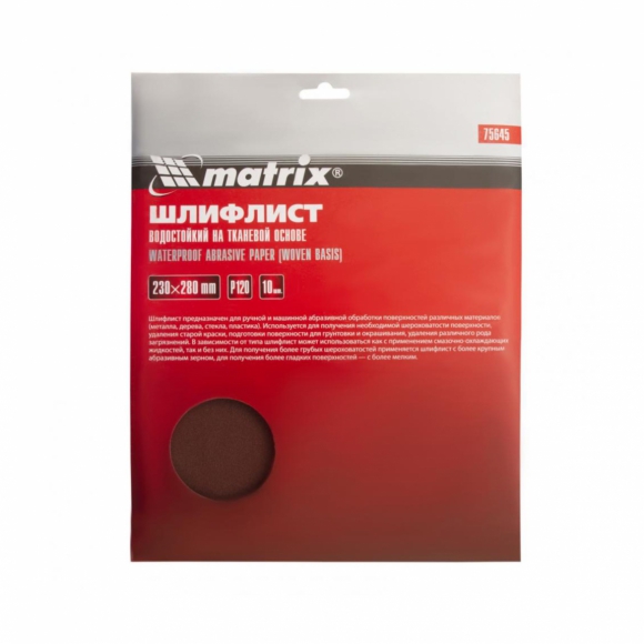 Шлифлист MATRIX на бумаж основе водостой P120 230x280мм 10шт 75610
