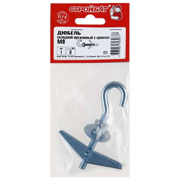 Дюбель СтройБат складной пруж с крюком белый цинк М6 60081