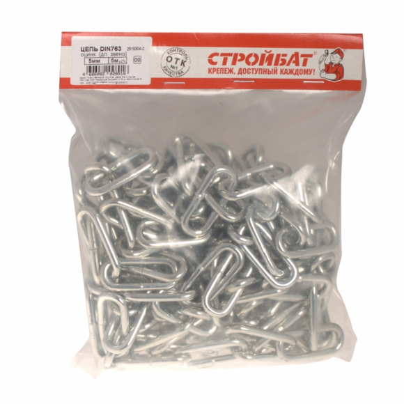 Цепь СтройБат кор звено белый цинк DIN 766 4мм 5м 261700
