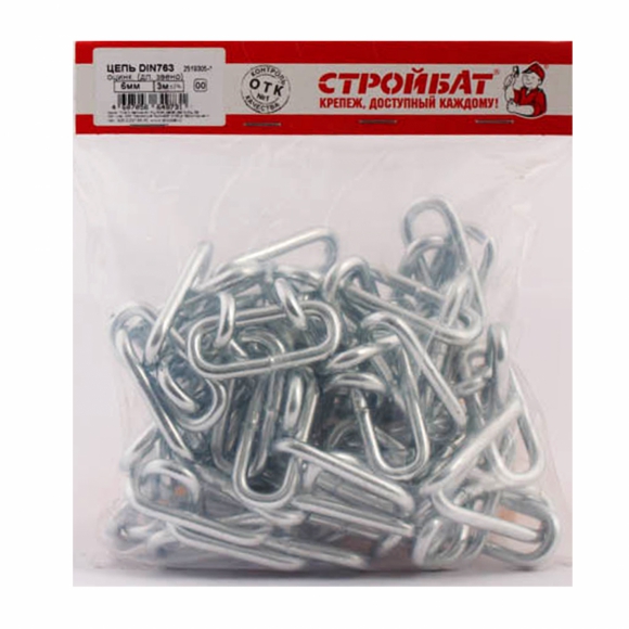 Цепь СтройБат дл звено белый цинк DIN 763 6мм 5м 311210