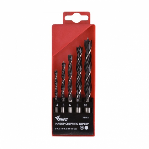 Набор сверл КУРС по дереву пласт/й бокс 4-5-6-8-10мм 5шт 36102